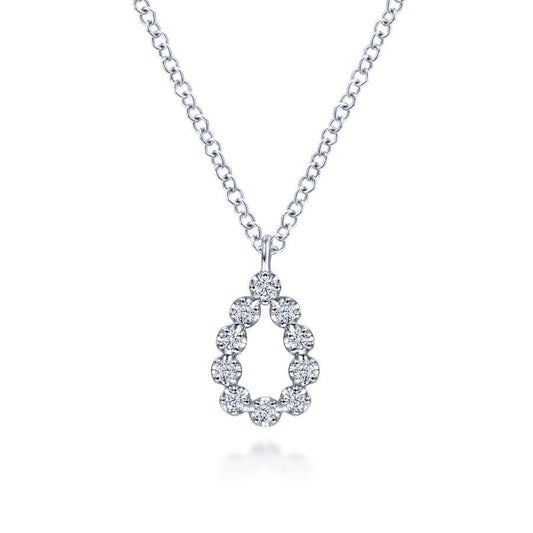 14K White Gold Diamond Teardrop Pendant Necklace (.09ctw) (17.50 in)