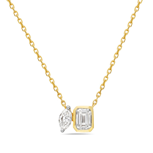 Celebrate the elegance of love with the 14K Yellow Gold Toi et Moi Diamond Necklace....