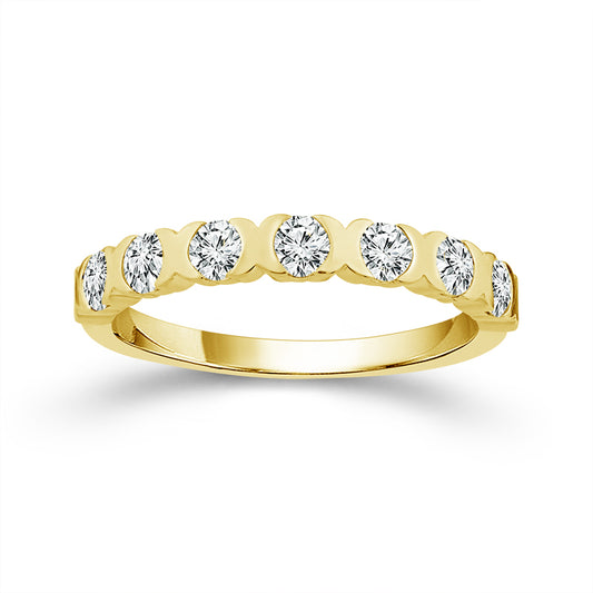Bold brilliance meets modern design in this 14K Yellow Gold 5/8CTW Half Bezel Diamond Stackable...