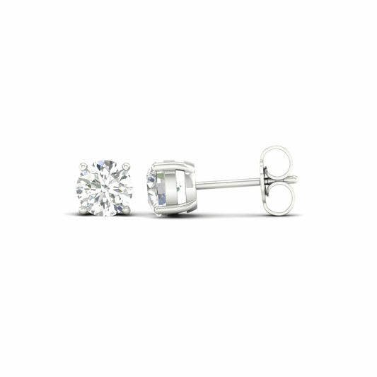 Timeless round lab-created diamond solitaire stud earrings are set in 14K white gold and radiate...