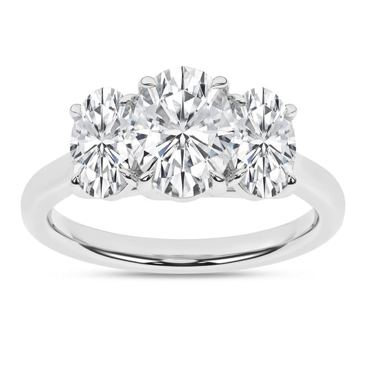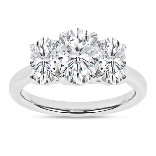 Experience the allure of our alluring oval lab-created Diamond Ring, a true masterpiece featuring three...