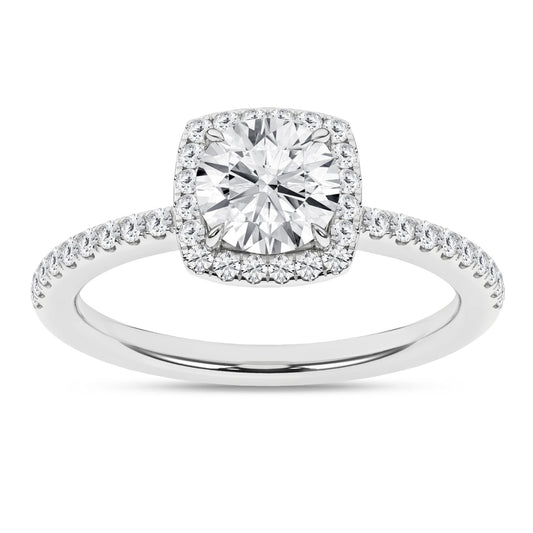 Elevate your love story with our Designer Lab-Created Diamond Straight Shank Cushion Halo Engagement Ring,...