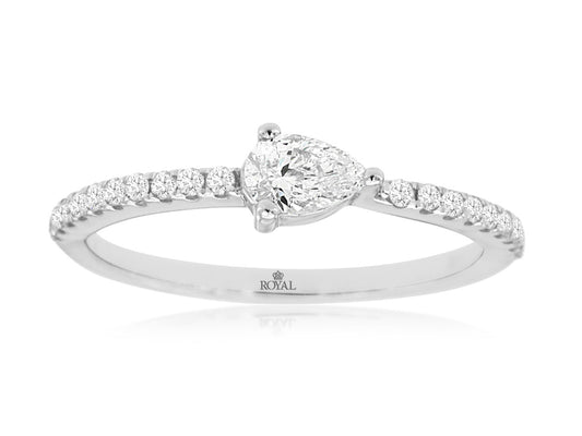 A stunning pear shaped diamond is set on a 14k white gold band for a...