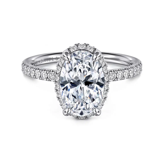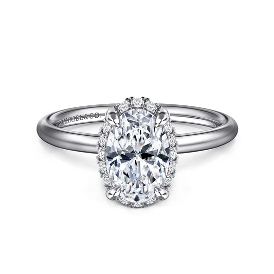 This stunning 14K White Gold Oval Hidden Halo Diamond Engagement Ring is the perfect symbol...