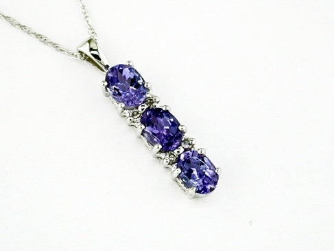 This 14K white gold pendant features three oval tanzanites. The tanzanites total 1ctw. Pair this...