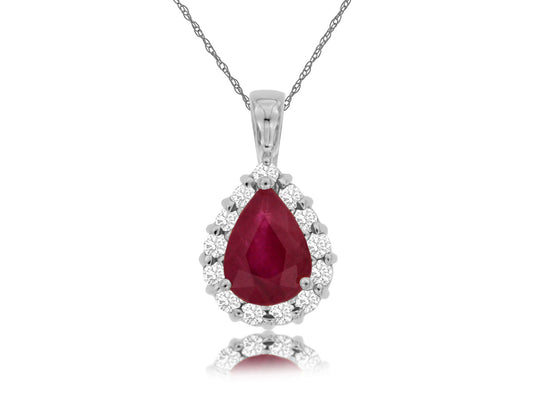 This classic ruby fashion necklace is perfection in red. The pear pendant features the vivid...