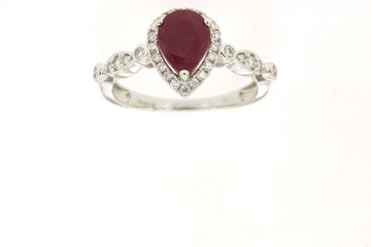 Make a statement with our Ruby and Diamond Halo Ring. Crafted in 14K white gold,...