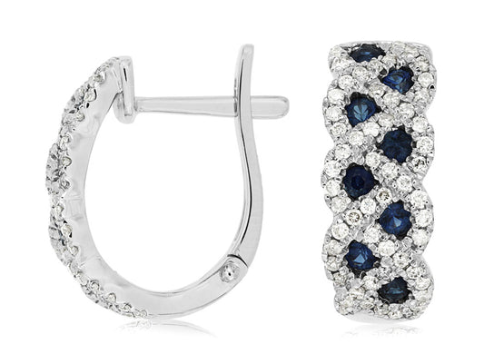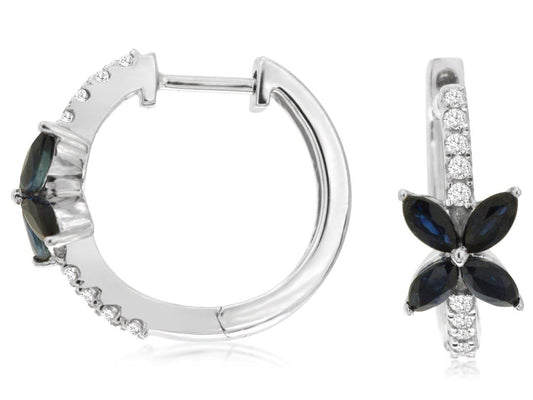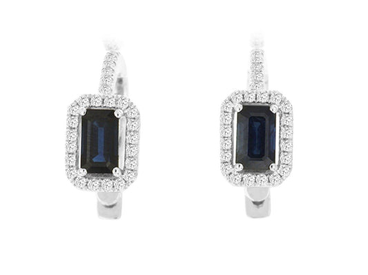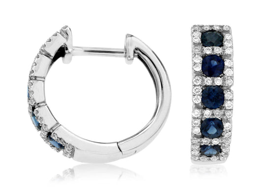 14K White Gold Sapphire (.52ctw) and Diamond (.42ctw) Huggies