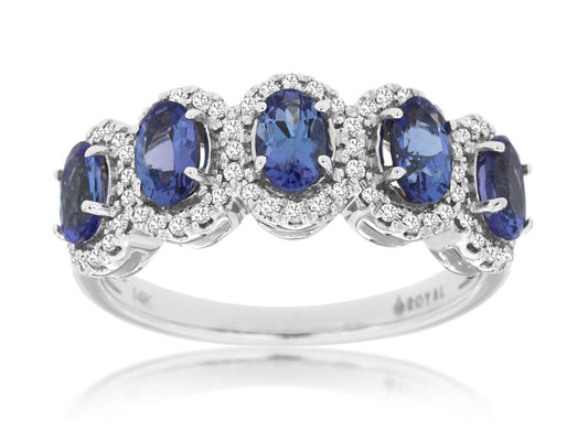14K White Gold Tanzanite and Diamond Band