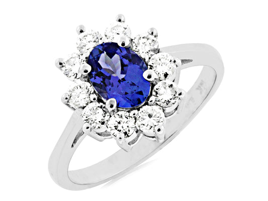 Make a statement with our White Gold Tanzanite and Diamond Halo Ring. Crafted in 14K...