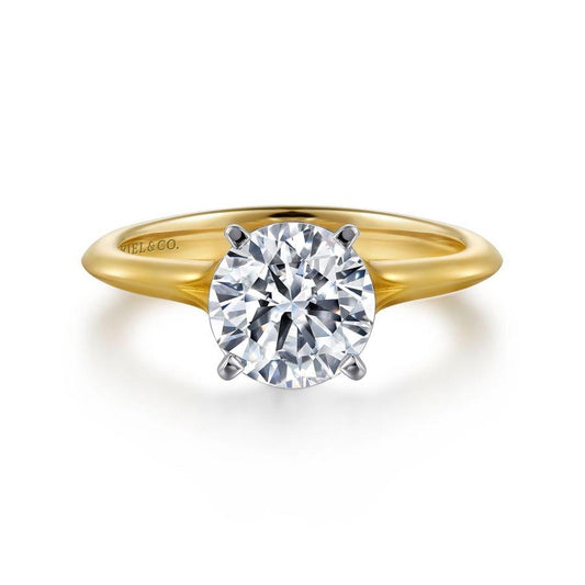 14K White-Yellow Gold Round Diamond Engagement Ring Setting only, center stone not included wedding band...