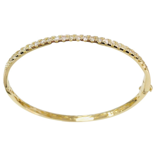 This dazzling diamond bangle is crafted in 14kt yellow gold. Round diamonds total 1.78cts and...
