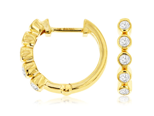 Elevate your everyday style with these 14K Yellow Gold 14mm Bezel Set Diamond Huggie Earrings....