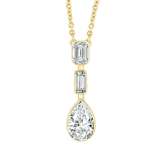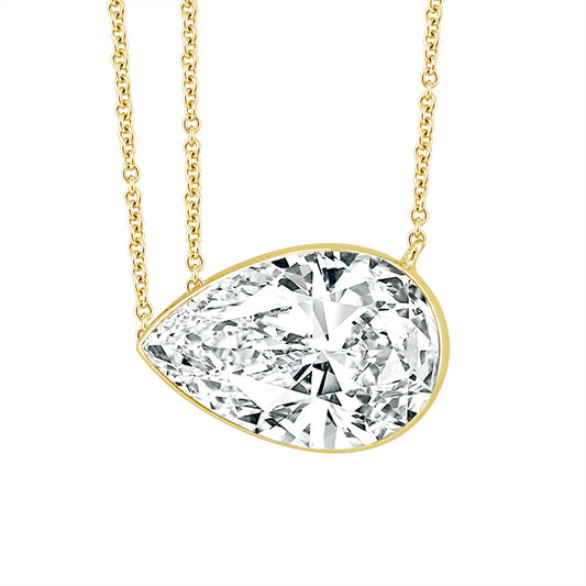 This 16-18" easy-to-layer, pear shaped diamond pendant, totaling 1 carat, drapes beautifully around the neck...