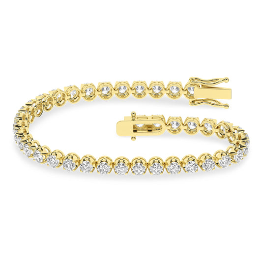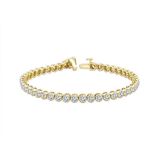 This dazzling diamond tennis bracelet is crafted in 14kt yellow gold. Round brilliant diamonds total...