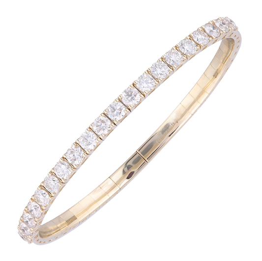 Effortlessly elegant, this 14K yellow gold flex bangle features a brilliant 5 carats total weight...