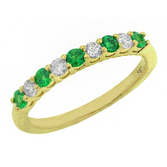 Beautifully set green emeralds and diamonds in an alternating pattern. Add a pop of color...