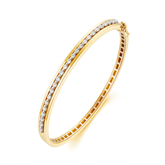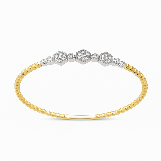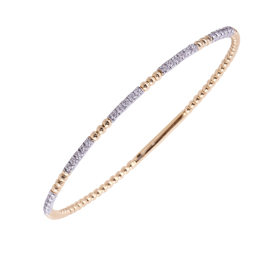 Classic elegance meets modern craftsmanship in this two-tone diamond bangle. Crafted in 14K yellow gold...