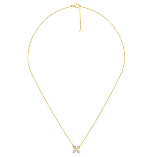 Four round diamonds form this stunning floral inspired adjustable necklace. Total diamond weight is 3/8ctw.