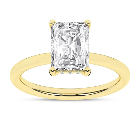 Presenting our classic radiant brilliant cut lab grown diamond solitaire ring, a testament to enduring...