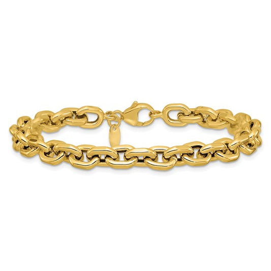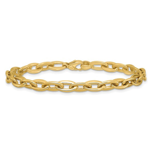 Embrace elegance and sophistication with our 14K Polished Fancy Wavy Elongated Oval Link Bracelet. This...