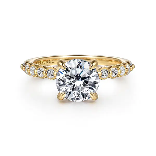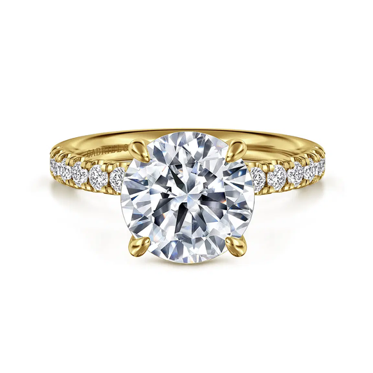 This timeless 14K yellow gold engagement ring features a stunning round-cut diamond at the center,...