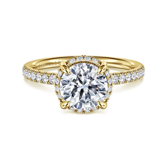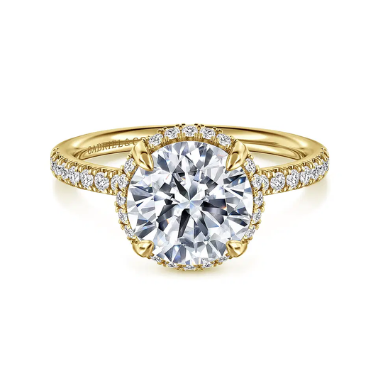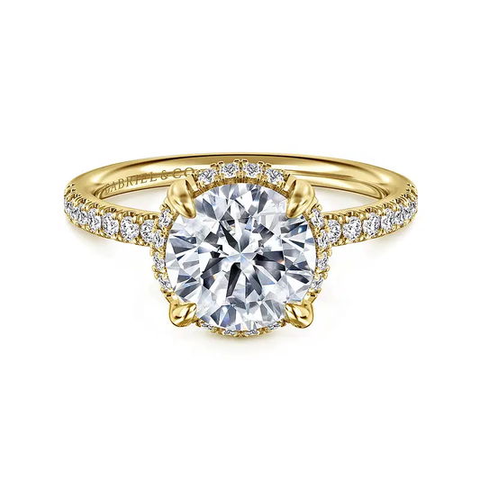 Elegance meets timeless beauty in this stunning 14K Yellow Gold Round Hidden Halo Diamond Engagement...