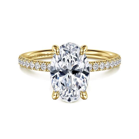 This elegant 14K Yellow Gold Oval Diamond Engagement Ring features a stunning center oval diamond,...