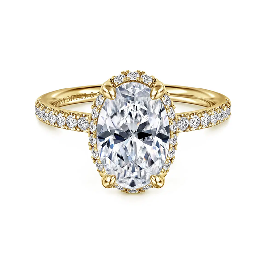 Introducing our Lab Grown Diamond Hidden Halo Engagement Ring, expertly crafted in 14KT yellow gold...
