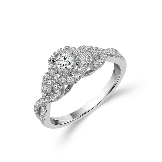 Celebrate your love with this exquisite 14K White Gold Round Diamond with Baguette Halo Engagement...