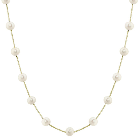 14kt 5.5x6mm Freshwater cultured pearl 17" Station Necklace