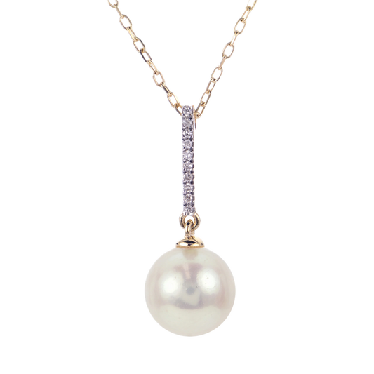 Effortlessly elegant, this 14K Yellow Gold Freshwater Pearl and Pavé Diamond Necklace brings timeless sophistication...