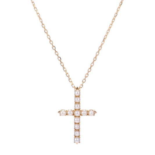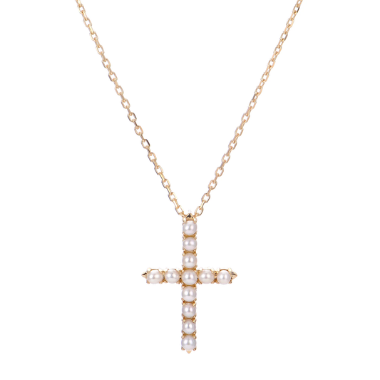 Timeless faith meets natural beauty in this 14K Yellow Gold Freshwater Pearl Cross Pendant. Delicately...
