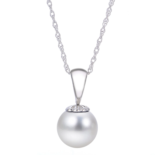14K white gold 7-7.5mm "A" quality akoya cultured pearl pendant on 18" rope chain. Fine...