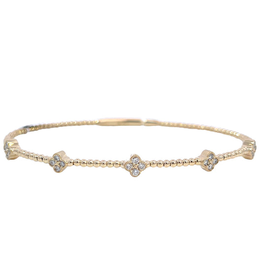 Delicate with a touch of sparkle, this beaded bangle features five evenly spaced diamond stations,...