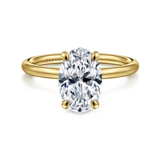 Capture the essence of timeless elegance with our 14K Yellow Gold Oval Solitaire Diamond Engagement...
