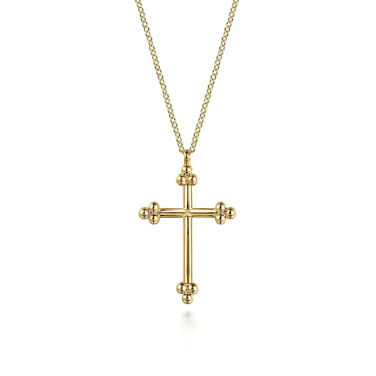 Elevate your style with this stunning 14K Yellow Gold Bujukan Cross Necklace. Crafted with precision...
