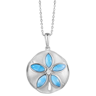 Discover the beauty of the sea with our Sterling Silver Large Larimar Sand Dollar Necklace....