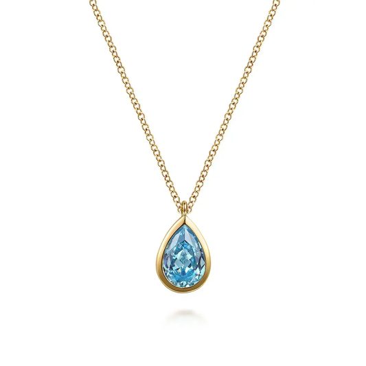 This elegant 14K Yellow Gold Teardrop Blue Topaz Pendant Necklace is the perfect addition to...