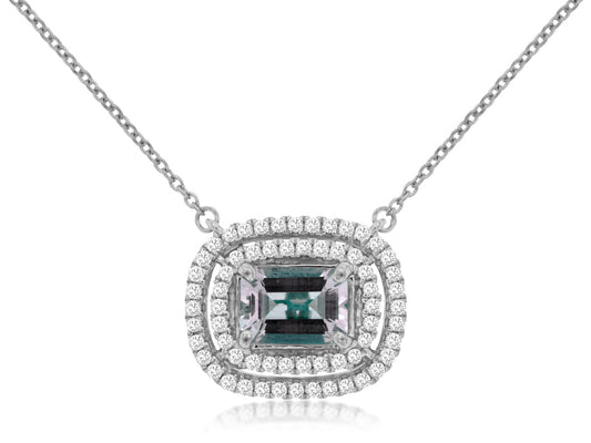 A .85ct emerald cut aquamarine is the striking focal point of this stunning necklace. The...
