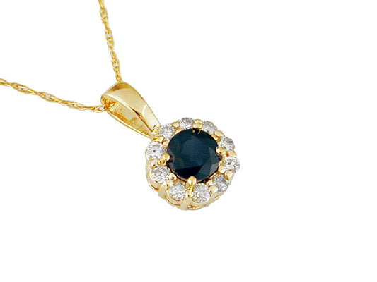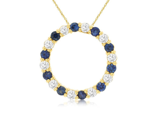 Elevate your style with our exquisite 14K Yellow Gold Sapphire and Diamond Circle Necklace. This...