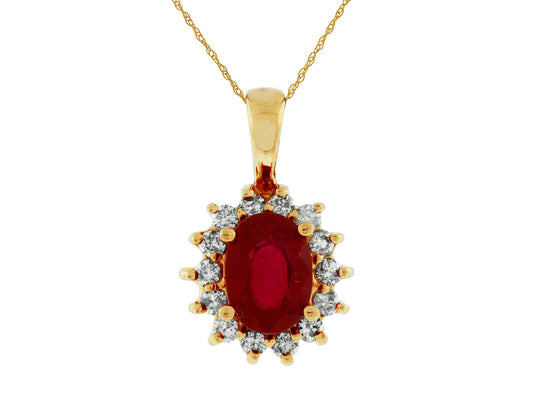 14K Yellow Gold Ruby and Diamond Circle Necklace