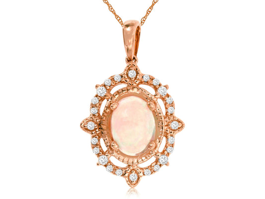 A brilliant 0.12ct pave diamond halo encircles this vintage inspired styled opal necklace. The vibrant...