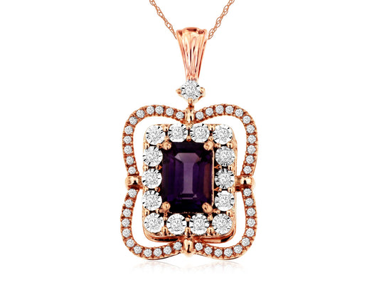 This classic amethyst fashion necklace is perfection in purple. The emerald pendant features the vivid...