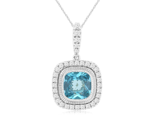 A 1.60ct cushion cut blue topaz is the striking focal point of this commanding necklace....