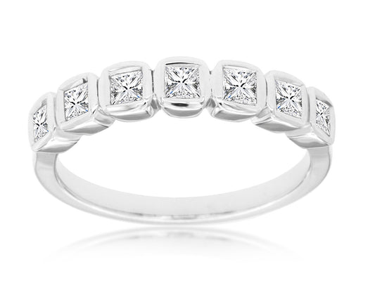 Exude timeless elegance with this exquisite 14K White Gold Seven Diamond Bezel Set Band. Crafted...