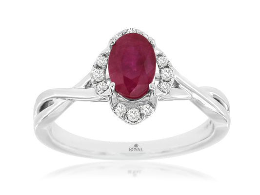 Make a statement with our Ruby and Diamond Halo Ring. Crafted in 14K white gold,...