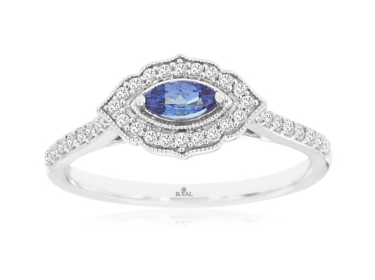 Adorn your hand with the enchanting beauty of this white gold tanzanite and diamond ring....