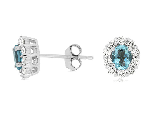 Elevate your style with our stunning Aquamarine and Diamond Halo Stud Earrings. Crafted in 14K...
