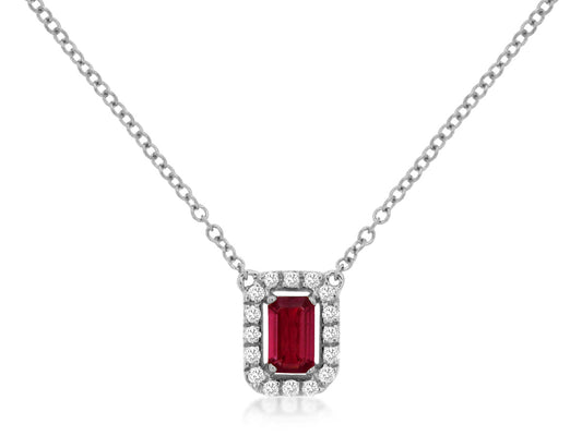 Elevate your look with our Ruby and Diamond Necklace in White Gold. Crafted in 14K...